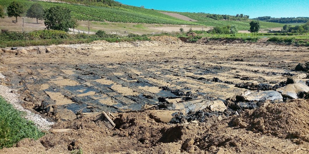 Vidange de la lagune, mise en place d’un réseau by-pass pour son assèchement, création de tranchées drainantes et curage de la lagune telles étaient nos activités avant nos congés annuels pour l’avancement de la création de la station dépuration.