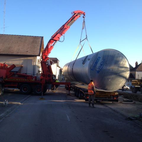 - 1 citerne enterrée de 18.60 m de long, 2.90 m de diamètre, 4 tonnes et 120 m3 de capacité